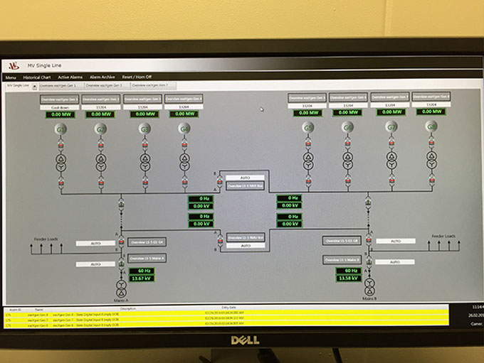 The SCADA Industrial PC Control System monitors the fuel economy of the generating sets. The customer can then decide whether to run two generating sets at a lower power, or one single unit.