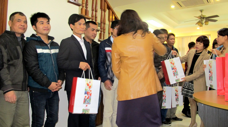 Ban Giám đốc trao những phần quà Tết cho toàn thể các cán bộ CBNV